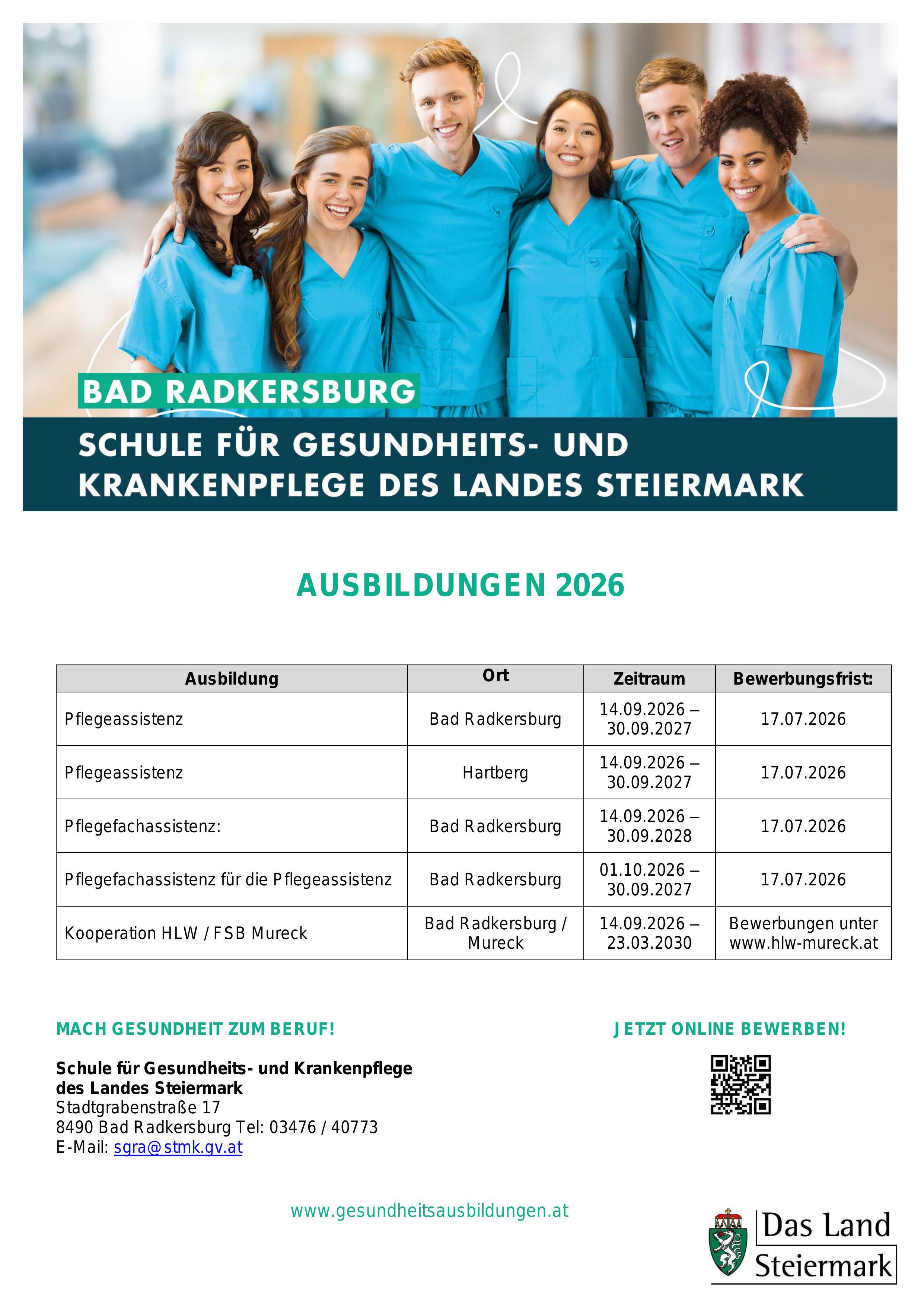 Buch - St. Magdalenavor 11 StundenAusbildungsübersicht - Schule für Gesundheits- und Krankenpflege des Landes SteiermarkÜbersicht Ausbildungen 2026-NEU1 Seite • 0,4 MB